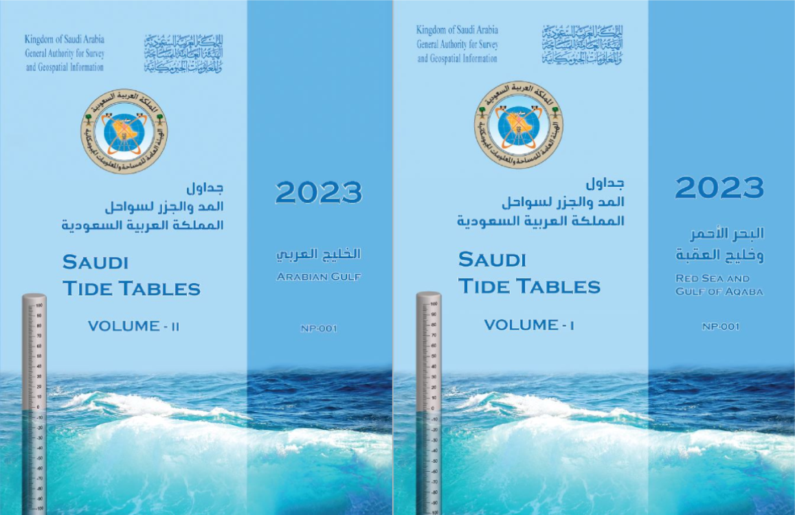 General Description: The book consists of two copies (the Red Sea and the Gulf of Aqaba version, and the Arab Gulf version). The book contains an introduction and explanation of tides, tidal reference tables, and the locations of tide monitoring stations Tables of expected tide values (one-year future readings) show: (daily maximum tidal values and times; hourly tide values and tides) The GASGI produces a new version of the book annually.